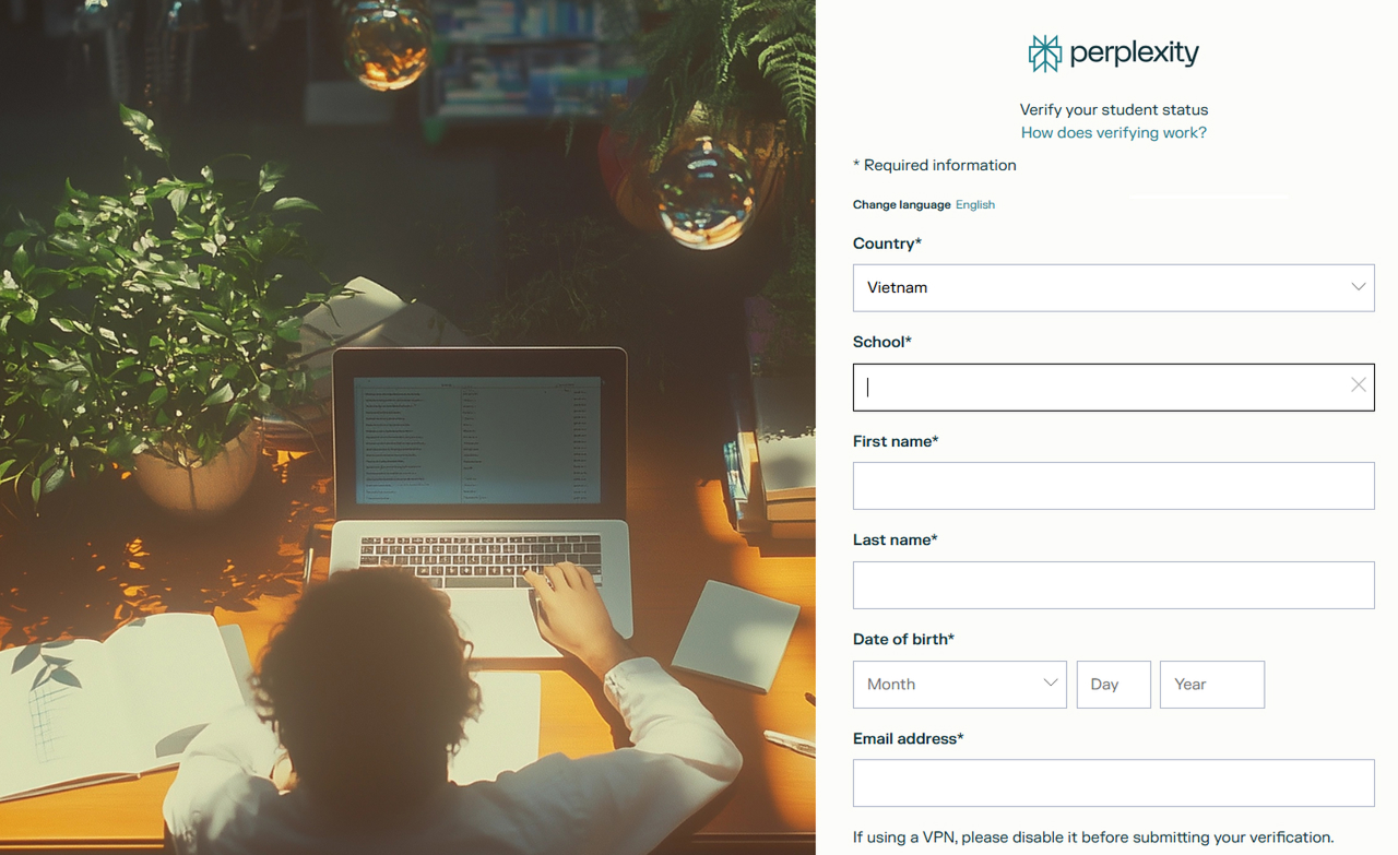 Là sinh viên tại các trường nằm trong danh sách hỗ trợ của Perplexity (bao gồm nhiều đại học tại Việt Nam)
